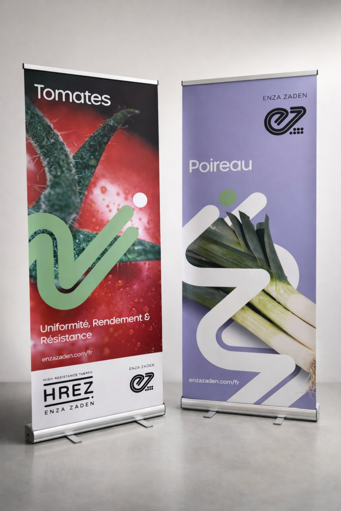 Grâce à notre large catalogue de structures, nous sommes en capacité de nous adapter au plus près de votre budget (roll-up, pop-up, mur textile, cadre lumineux, totem, comptoir…)