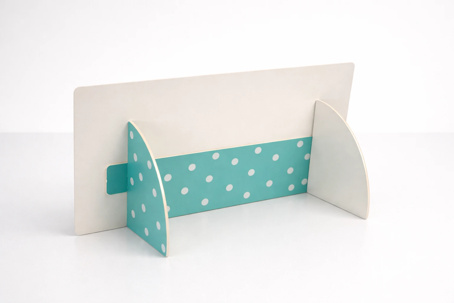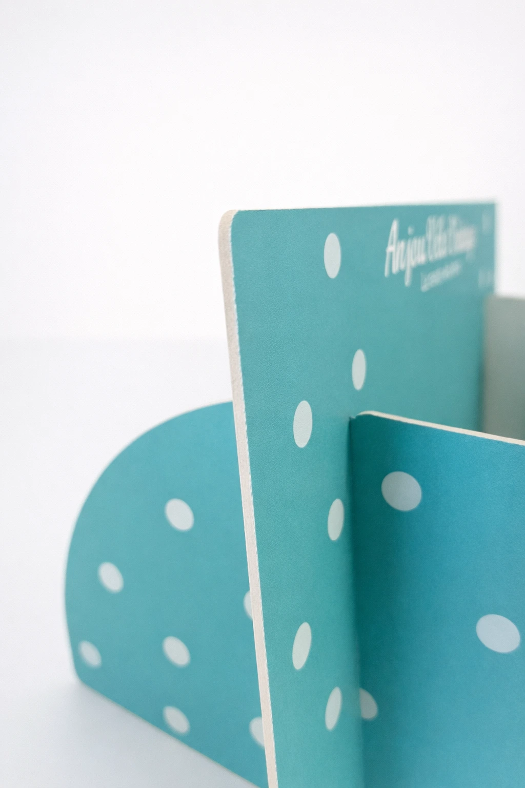 Ici, nous sommes partis sur du carton compact. Une matière légère et rigide qu’on adore pour ce type de projet. Pour un rendu encore plus cool, nous avons réalisé une découpe sur-mesure.